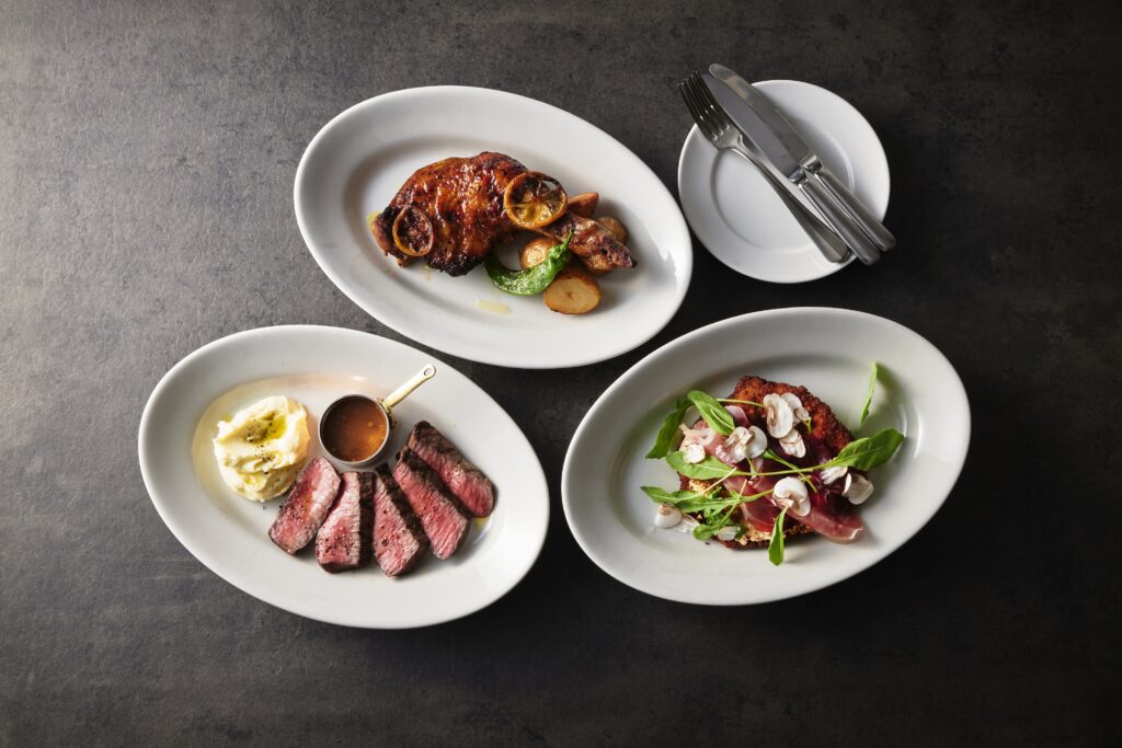 今までよりも小皿料理(アペタイザー)のラインナップが充実。日本各地の旬の素材を使ったお料理を、定番から季節限定まで幅広く楽しめます。メインディッシュには、「ふくどめ小牧場」の生ハムを添えた仔牛のカツレツや、京都亀岡牛を使用したグリルステーキなども登場!ワインのラインナップも充実し、気軽にちょい飲みから、しっかりとした会食まで、夜の食の楽しみ方が広がります。